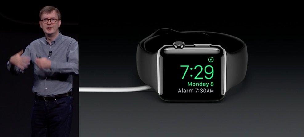 Apple Watch now doubles as a cute little bedside alarm clock. Activating Nightstand Mode displays the time and date on the side of Apple Watch, while the Digital Crown and side button are turned into snooze and off buttons for the alarm.