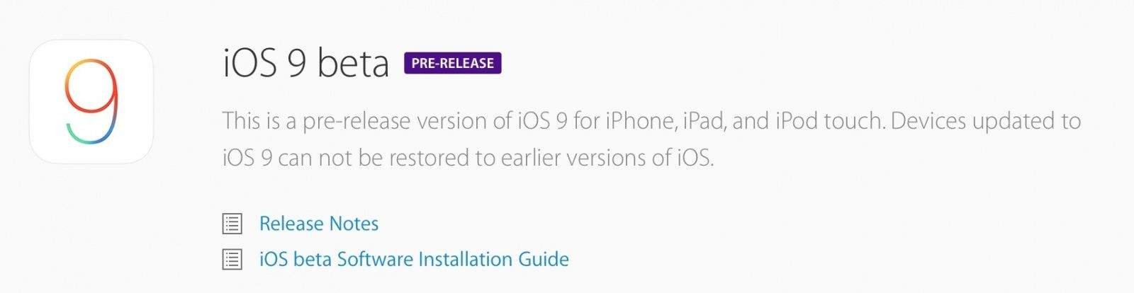 Make sure you’ve backed up your iOS device using iCloud or iTunes before you install any new beta. “Devices updated to iOS 9 beta can not be restored to earlier versions of iOS,” says Apple. Yikes.