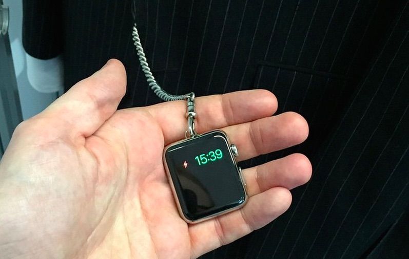 Rather than designing a fashionable Apple Watch band, the forward-thinking designer bridged Apple’s timekeeping accessory to the past by turning it into a pocket watch attached to a chain.