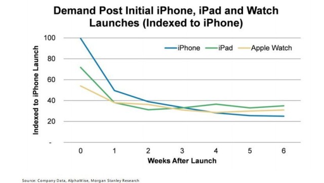 The Apple Watch launched in late April but people are still eager to get their hands on it according to Morgan Stanley. That could be related to the limited supplies that were available at launch, where as the iPhone was available at Apple Stores and AT&T retail locations when it launched on June 29th 2007.