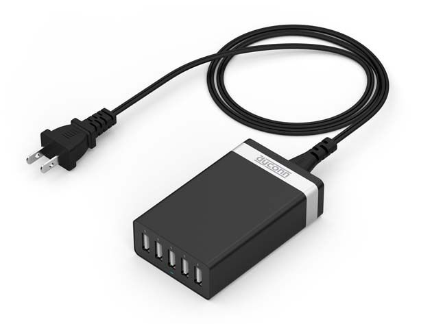 Cut down on tabletop clutter and consolidate your charging needs with this 5-port, 50 watt USB hub. Tough and portable, it can quickly charge up to 5 phones or 4 tablets simultaneously, drawing just as much juice as it needs and indicating progress with a built-in LED display.