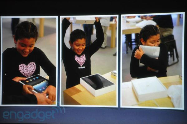 Then Steve showed the slide above, showing a happy little girl hugging her iPad. Enjoy it now, little girl: when the proletariat rise, the consumers shall be the first at the firing line!
