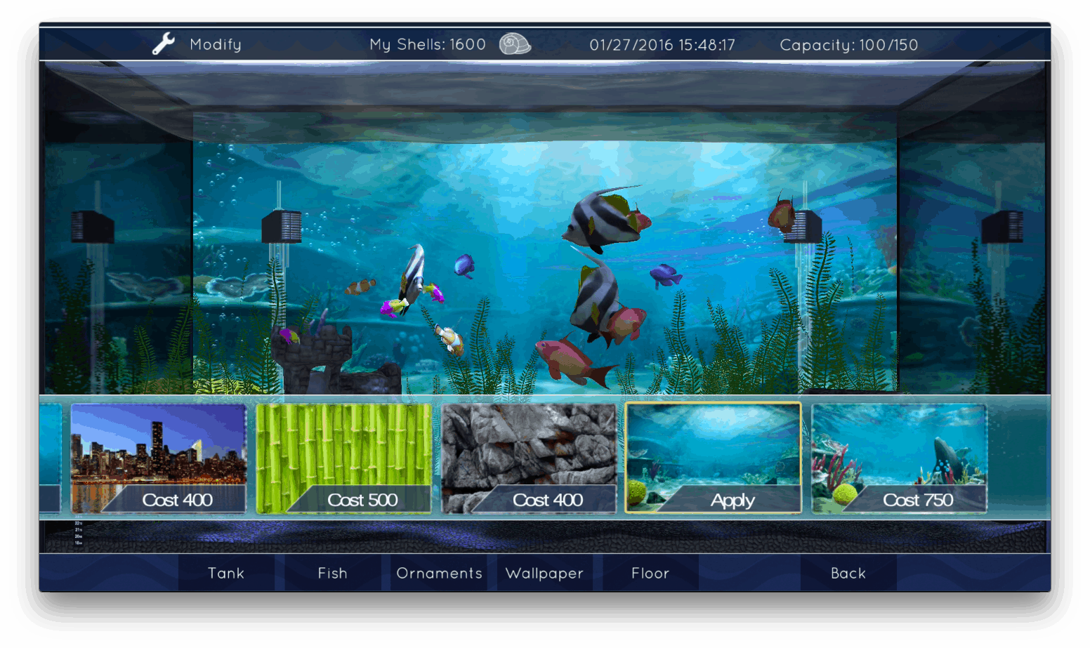If you run out of shells, you can purchase more via in-app purchases: 1,000 shells for $0.99 up to a pack of 15,000 shells for $9.99. You probably won’t run out of shells decorating the tank initially, but you will eventually if you keep wanting to buy new fish, decorations or even new tanks later on.