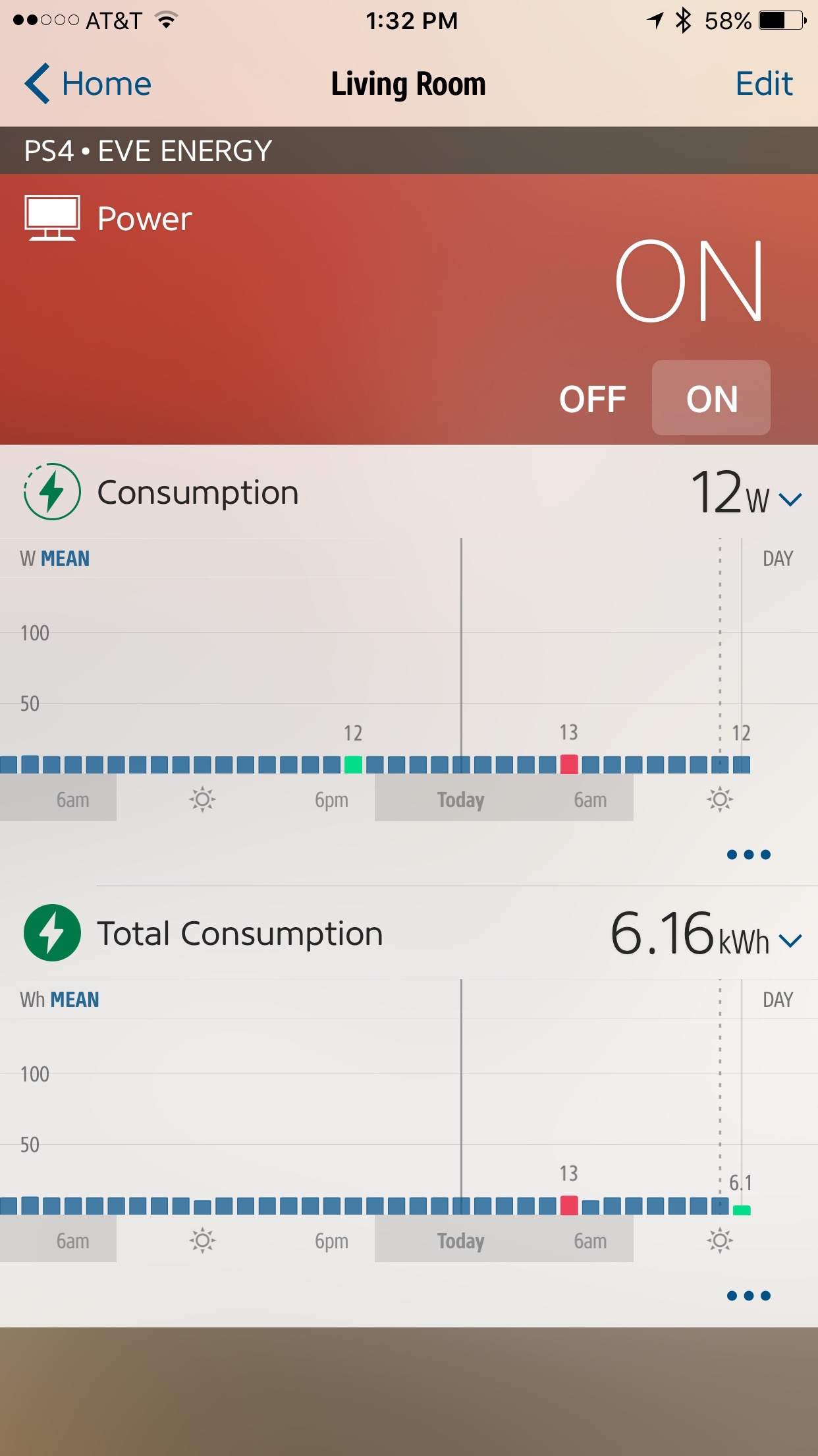Thanks to this cool little HomeKit gadget from Elgato, I know exactly how much energy my PlayStation 4 uses (79 watts). I also know how much energy is sucked away by my living room lamp (40 watts), my big HDTV (143 watts) and my Apple TV (8 watts).