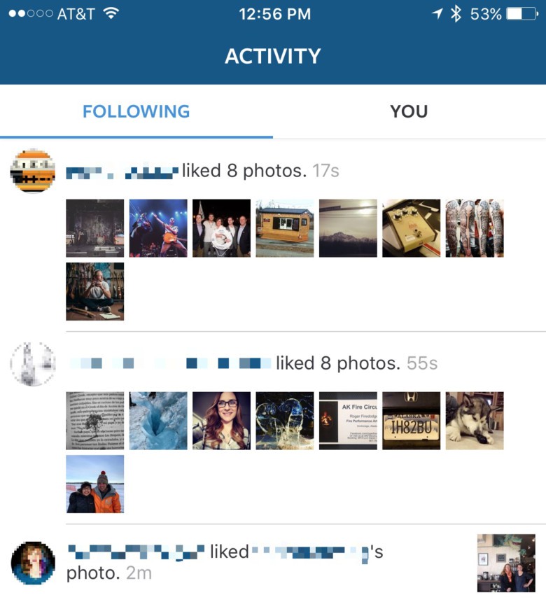 Launch Instagram on your iPhone and tap on the little heart icon in the lower right, just to the left of your own Instagram account icon. You’ll see two tabs at the top of the resulting Activity screen: Following and You. Tap on Following to see what the people you follow have liked recently.