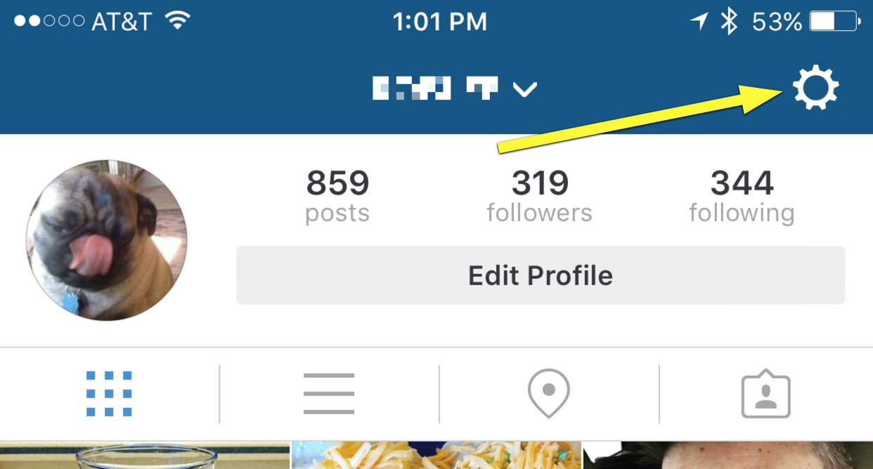 If you want to take a look at your own favorites, you’ll need to dig a bit deeper. Tap on your own little icon in the lower right corner of the Instagram app screen, then tap on the little gear icon in the upper right to access the Options screen.