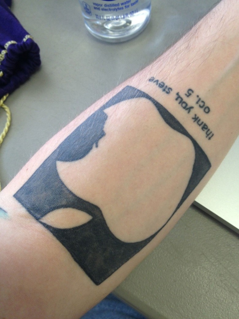 Steve Jobs tattoo.. Oh my! Good way to remember the worlds most famous narcissist… I guess.