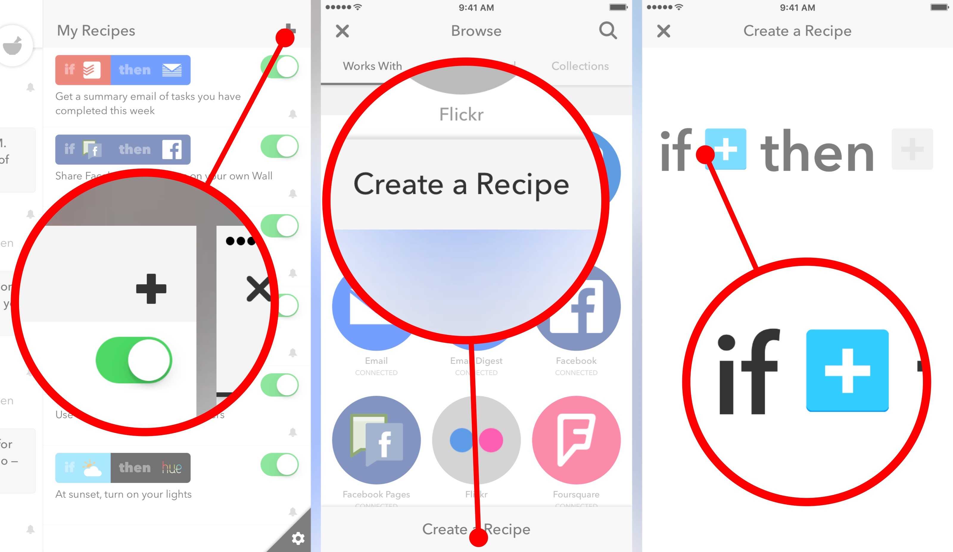 - Launch the IFTTT app and tap the plus sign in the side navigation to create a new custom recipe.