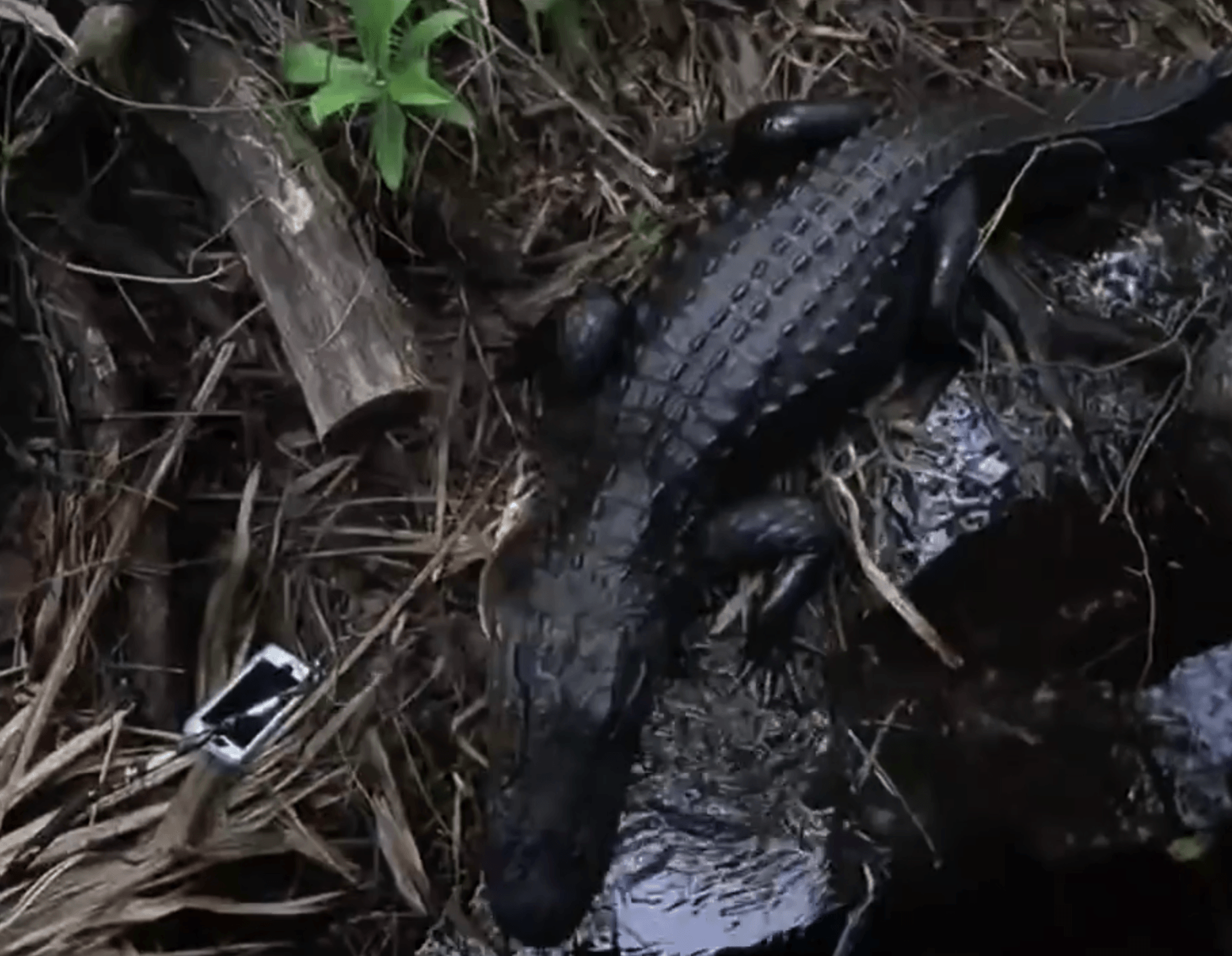 With a crowd forming to watch what was happening, the alligator put its snout over the iPhone, then made a “crazy, hissing-slash-grunting sound.” Finally the alligator backed off and Larrimore was able to reach down and retrieve his iPhone — only to find out it no longer switches on.
