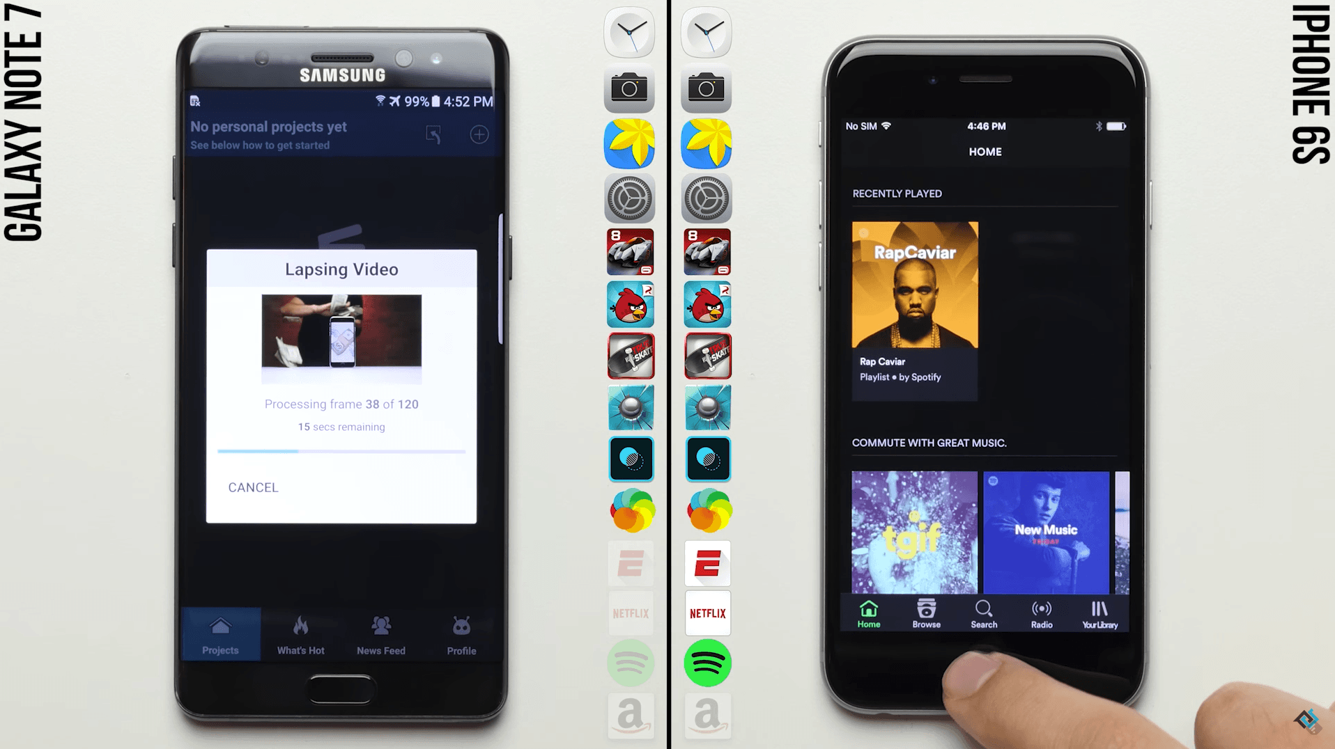 But none of that really matters. When you put these devices side-by-side, it’s actually the iPhone that’s faster at loading apps and games — as this speed test from PhoneBuff demonstrates.