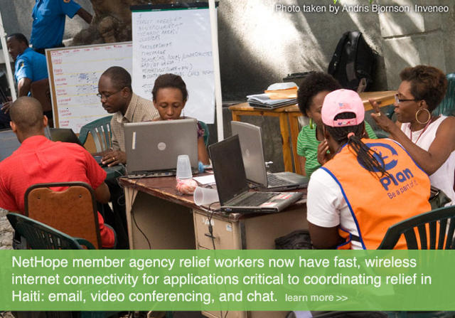 NetHope (a charity Micorsoft has partnered with) provides connectivity for relief workers in Haiti.