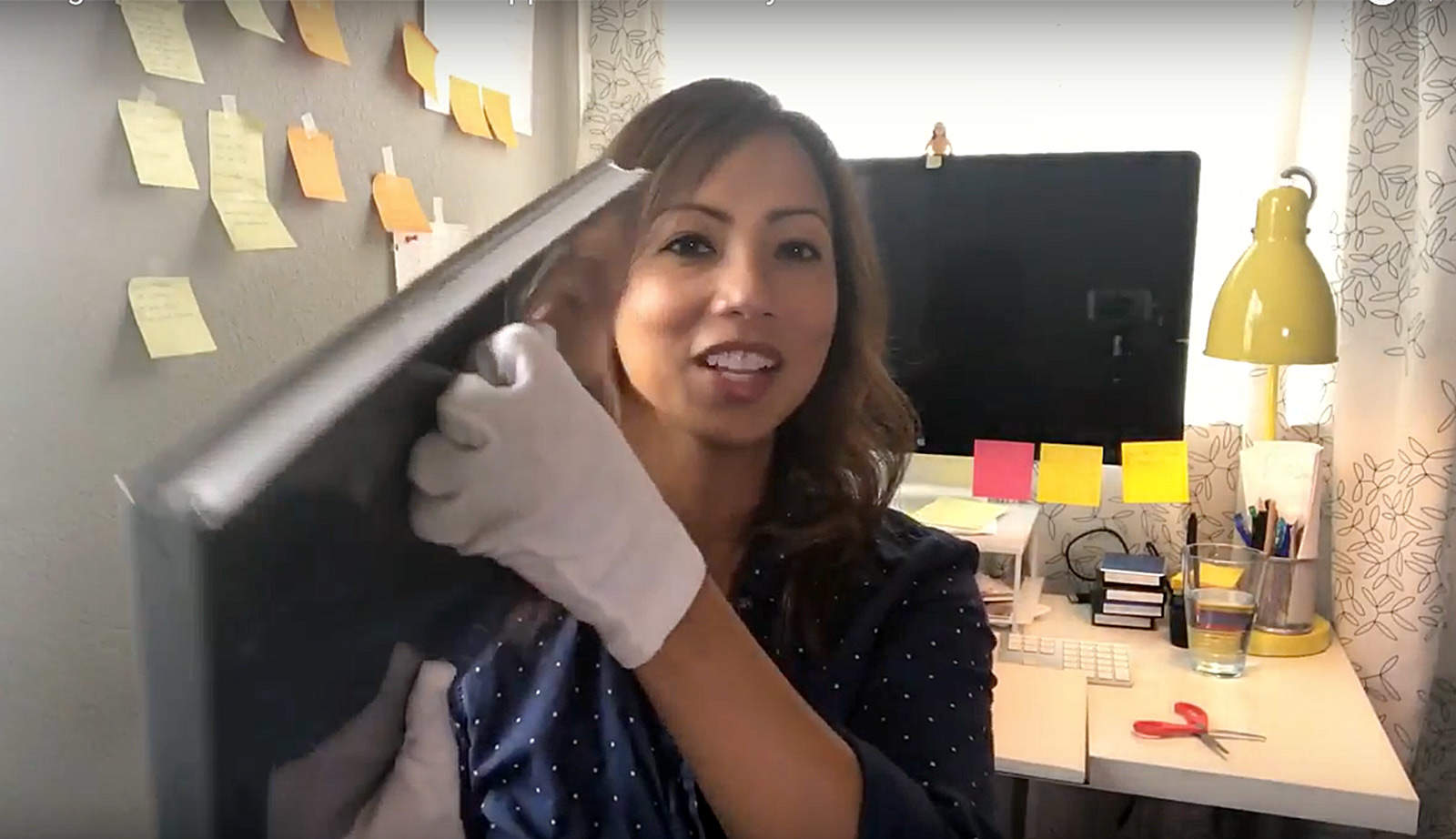 Apple sent along white gloves with last year’s book. The company didn’t do that this year, but de la Paz donned her old ones “just to be fancy.”