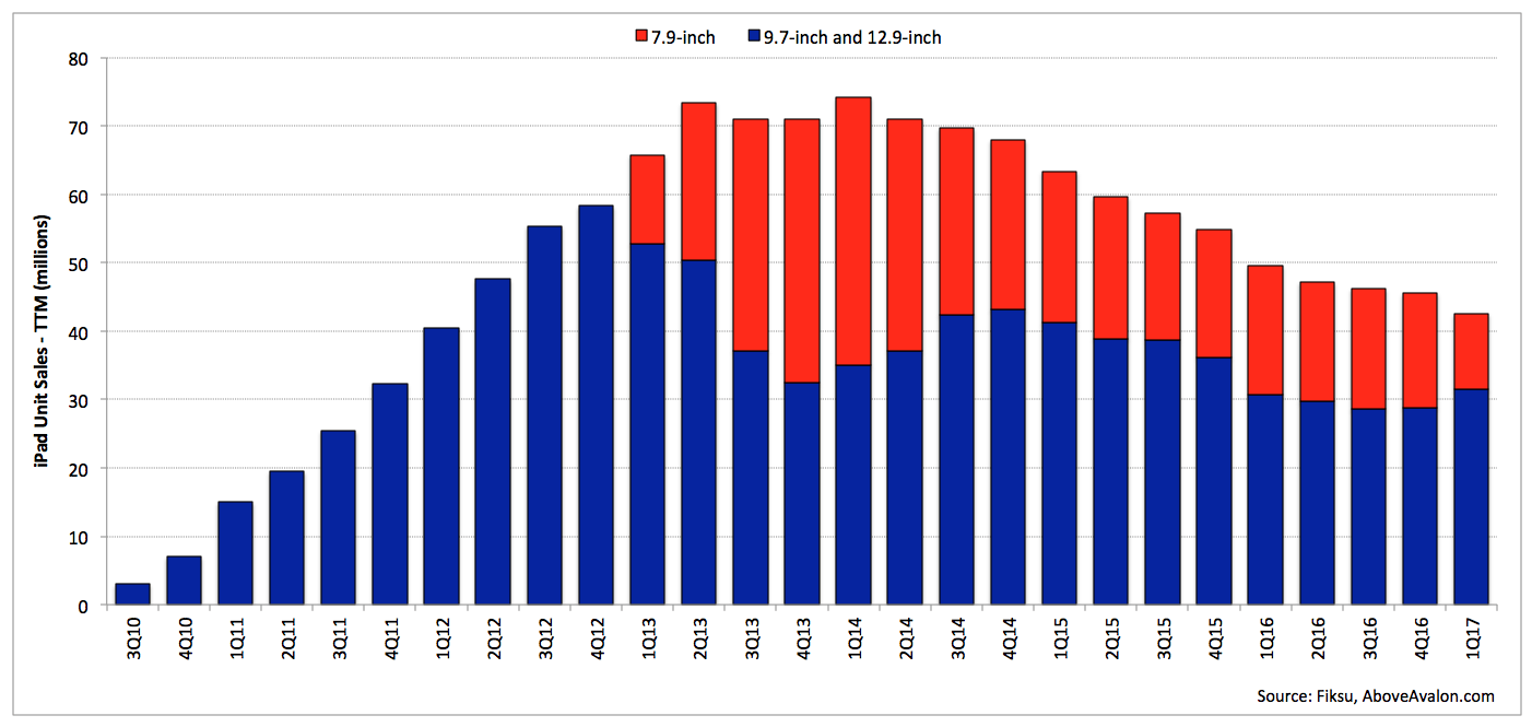 “For the past four years, we have seen various theories put forth to explain the significant drop in iPad sales. Longer upgrade cycles, larger iPhones, inferior software, lack of professional apps, and even poor Apple storytelling have been given as factors driving iPad sales weakness.
