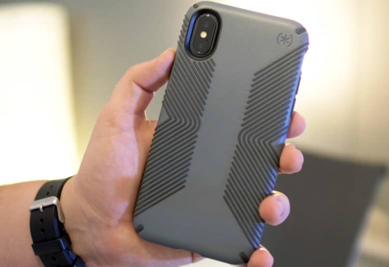 On the back of the Speck Presidio case, rubber ridges add extra grip, no matter how awkwardly you hold your iPhone X. The rest of the case is composed of textured matte plastic which is scratch-resistant, meaning if you drop your phone a lot, the case should stand up to a bit of a beating. Especially handy if you like to leave your keys in the same pocket as your phone.