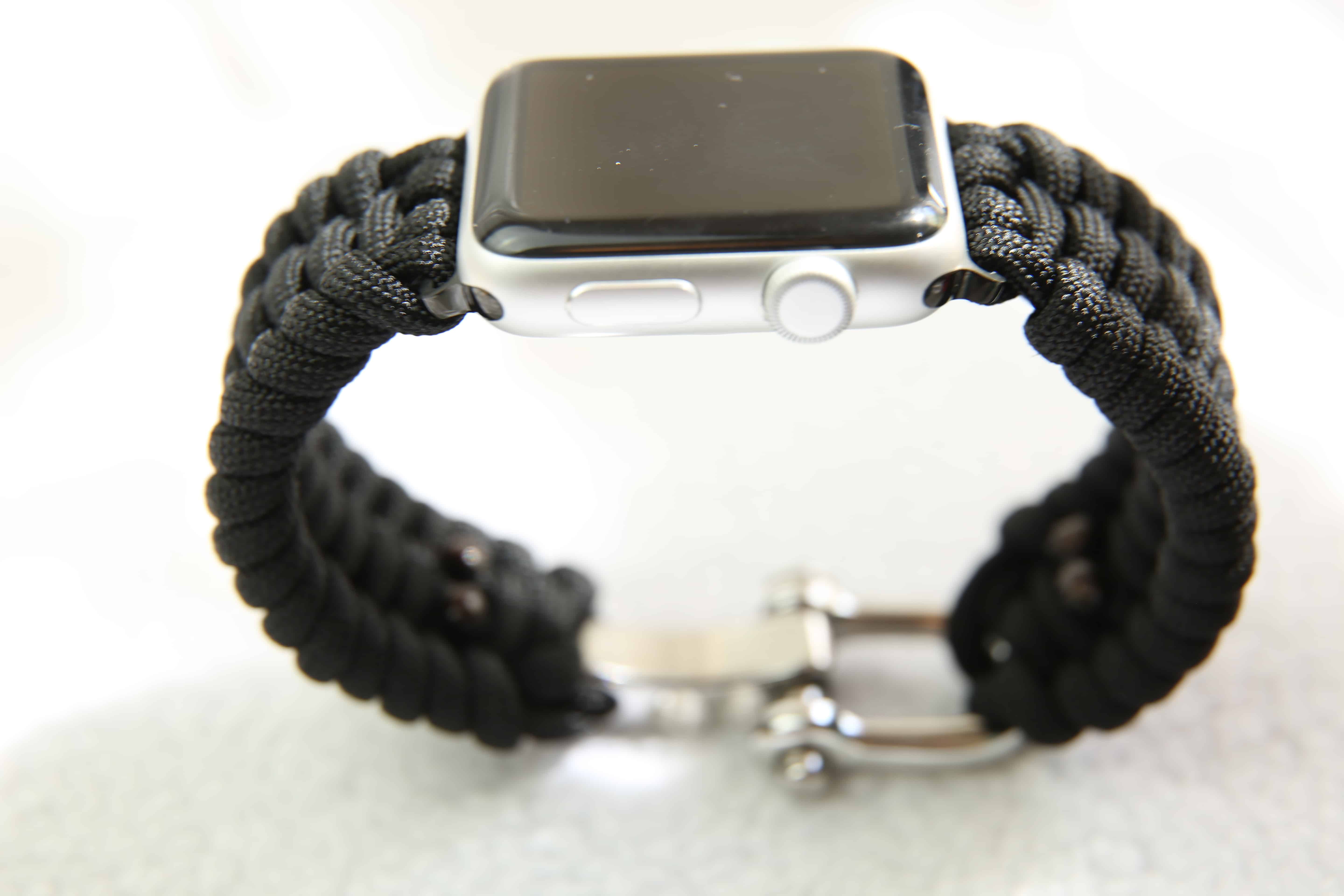 These Paracord Bands for Apple Watch come in more than 50 color options. Survival Straps uses super-tough, marine-grade 316 stainless steel shackles on its bands. And, depending on your wrist size, each strap includes roughly 12 feet of usable, military-issue 550# test paracord. Rugged and ready!