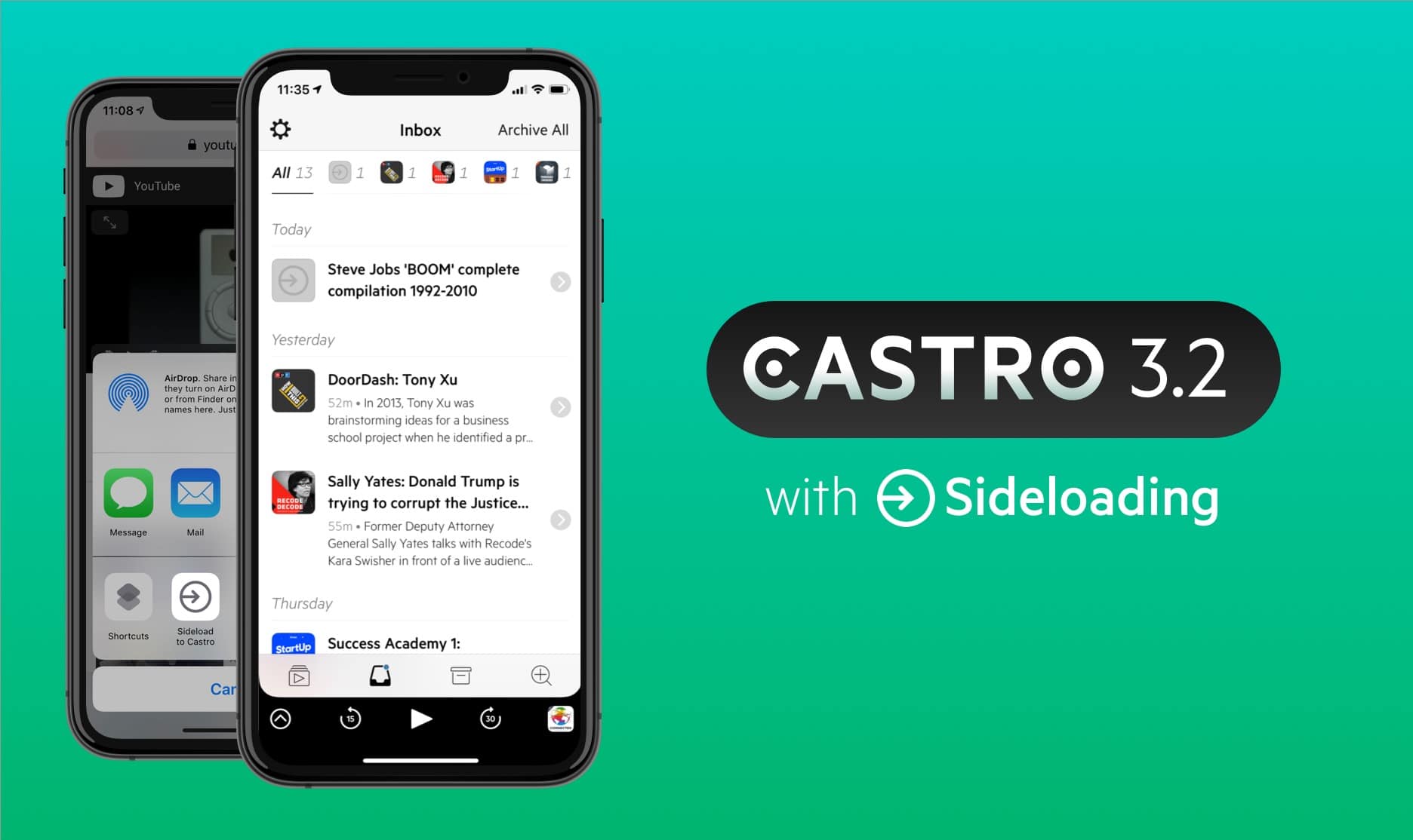 Castro has had sideloading for a little while, but now it has a hare extension to make it easier. Previously you had to save the audio file to the Castro folder on your iCloud Drive. Now you just share it into Castro, straight from Safari.