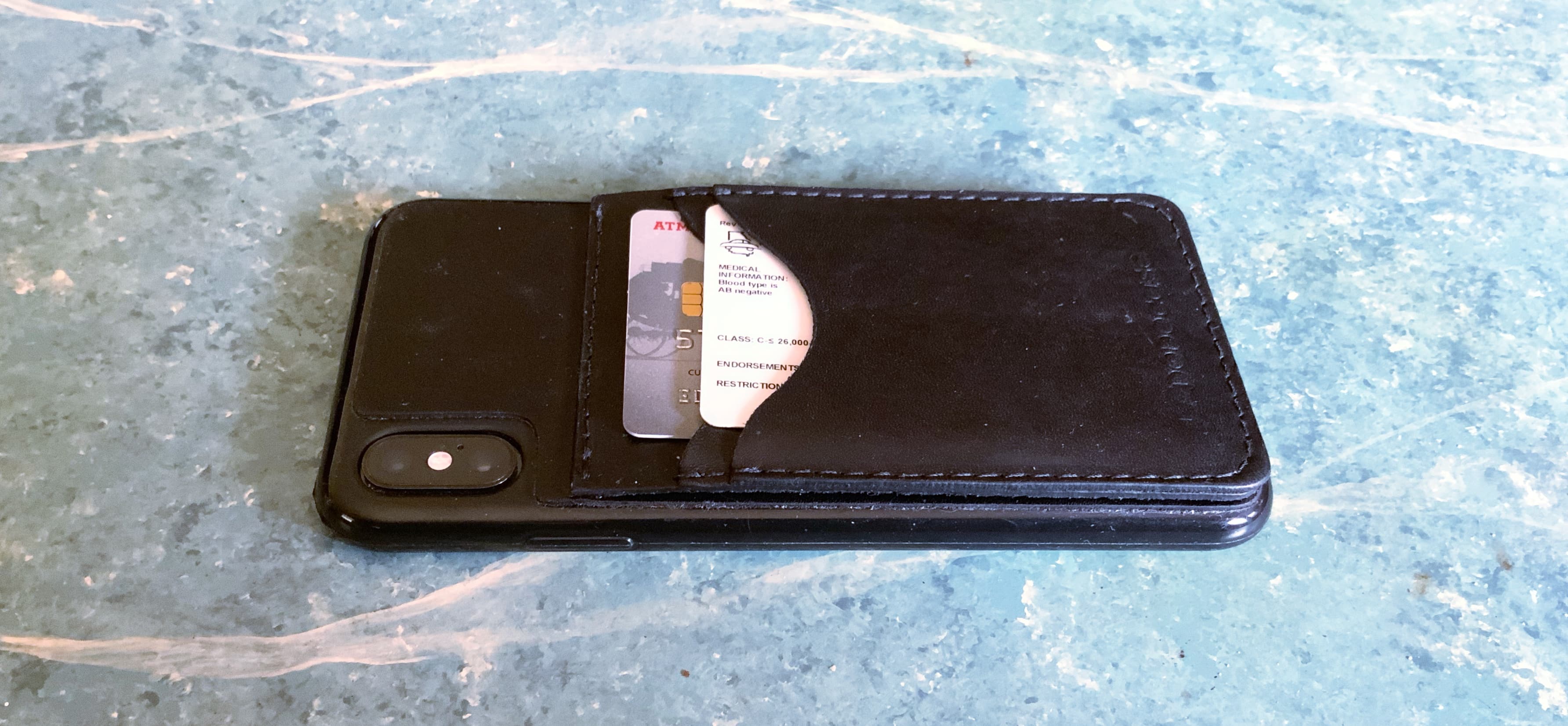 This second case puts the slots for holding cards on a hinge so it acts as a kickstand for your iPhone. Magnets keep the flap from, well, flapping around, and a strap keeps it from opening too far.