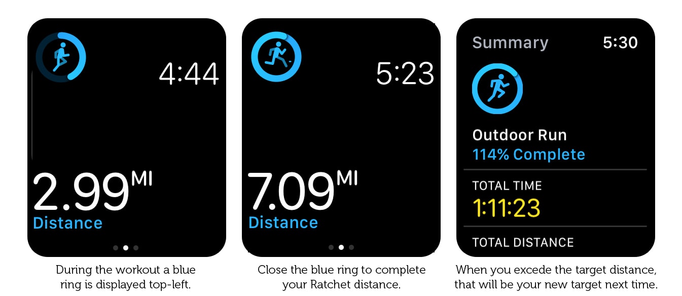 As long as you always start your workouts this way and close the blue ring before you finish your workout, you can be sure you have completed your daily Ratchet distance.