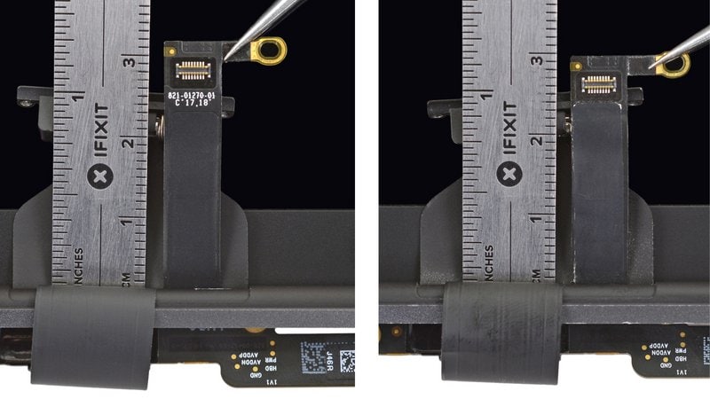 Apple has made its display cables ever so slightly longer — 2mm longer, to be exact — in 2018 MacBook Pro units. That additional length, albeit small, could be enough to prevent wear on the cables over time.