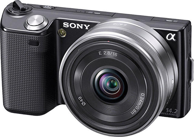The NEX-5 is the smallest digital interchangeable-lens camera available. Attach different lenses easily to match the shooting situation, then take professional grade pictures without the extra size and weight of standard DSLR cameras. And your metrosexual will appreciate that this space-saving camera takes up less room in hisThe NEX-5 camera is made by Sony and is available in three colors from Sony for $649.99 (including 16mm lens) with free shipping.
