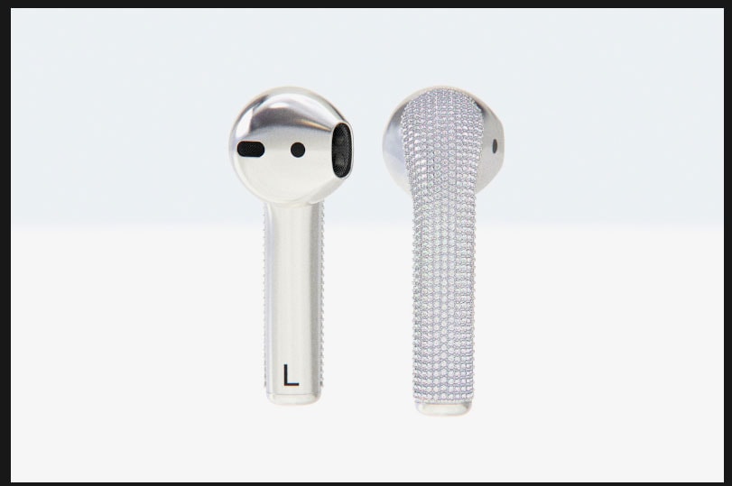 Delucca cast the AirPods in white gold and affixed 1,000 VVS natural, mined diamonds. All diamonds come with imperfections. VVS stands for Very, Very Slightly, meaning flaws are minute and barely detectable.