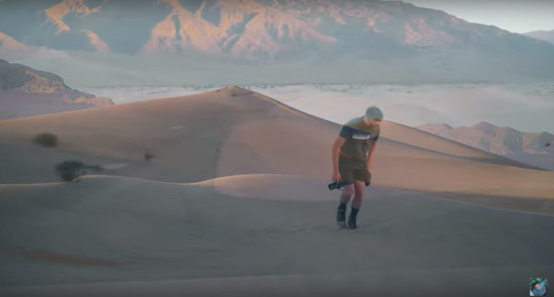 Death Valley National Park was the crew’s first and most challenging stop. On day one, they marched through the sand and 115-degree heat to the dune depicted on the Mojave wallpaper at sunset.