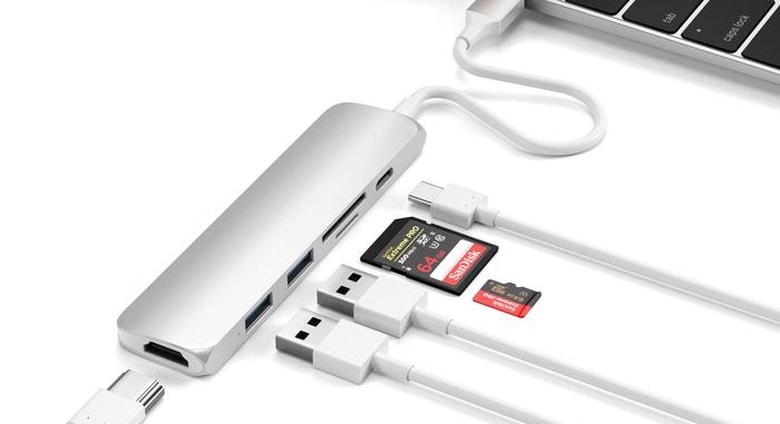 Missing from the Satechi Slim Aluminum Type-C Multi-Port Adapter V2 is a headset jack, presumably because Macs and most MacBooks already have one.