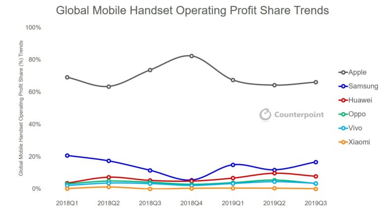 A new report from Counterpoint Research is a reminder just what a profit-generating powerhouse the iPhone actually is. In Q3 2019, Apple captured a whopping 66% of industry profits. Second place winner Samsung, by comparison, pulled in just 17% of handset profits.