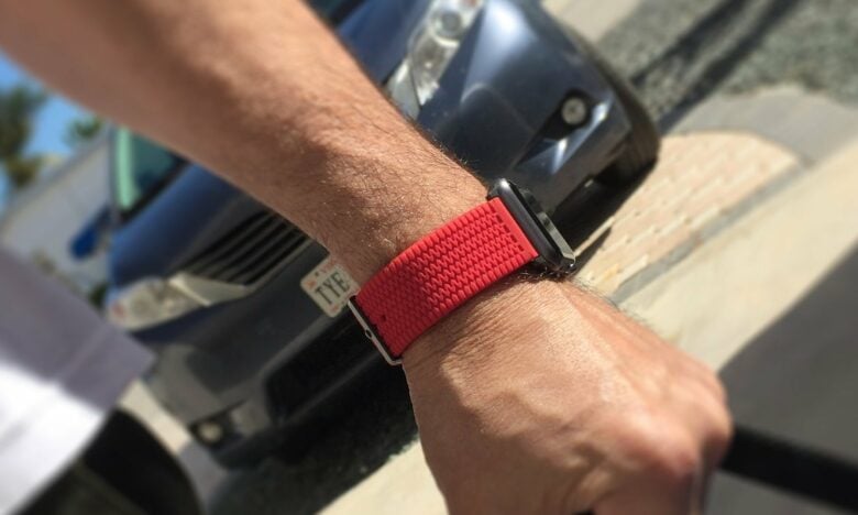 It has a traditional buckle — not the fiddly “pin-and-tuck” closure you’ll find on Apple’s official Sport band — and it’s a bargain at just $14.99.