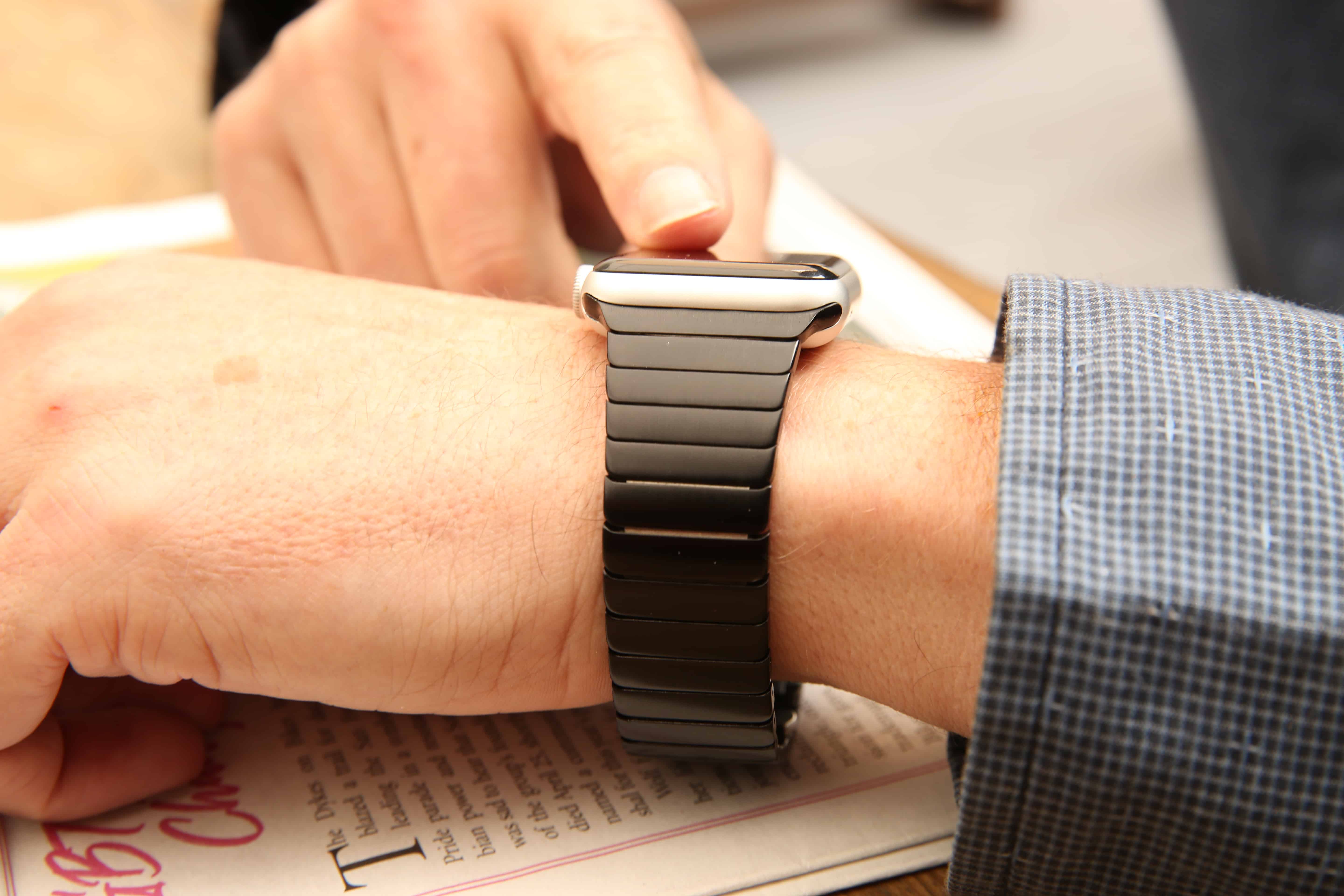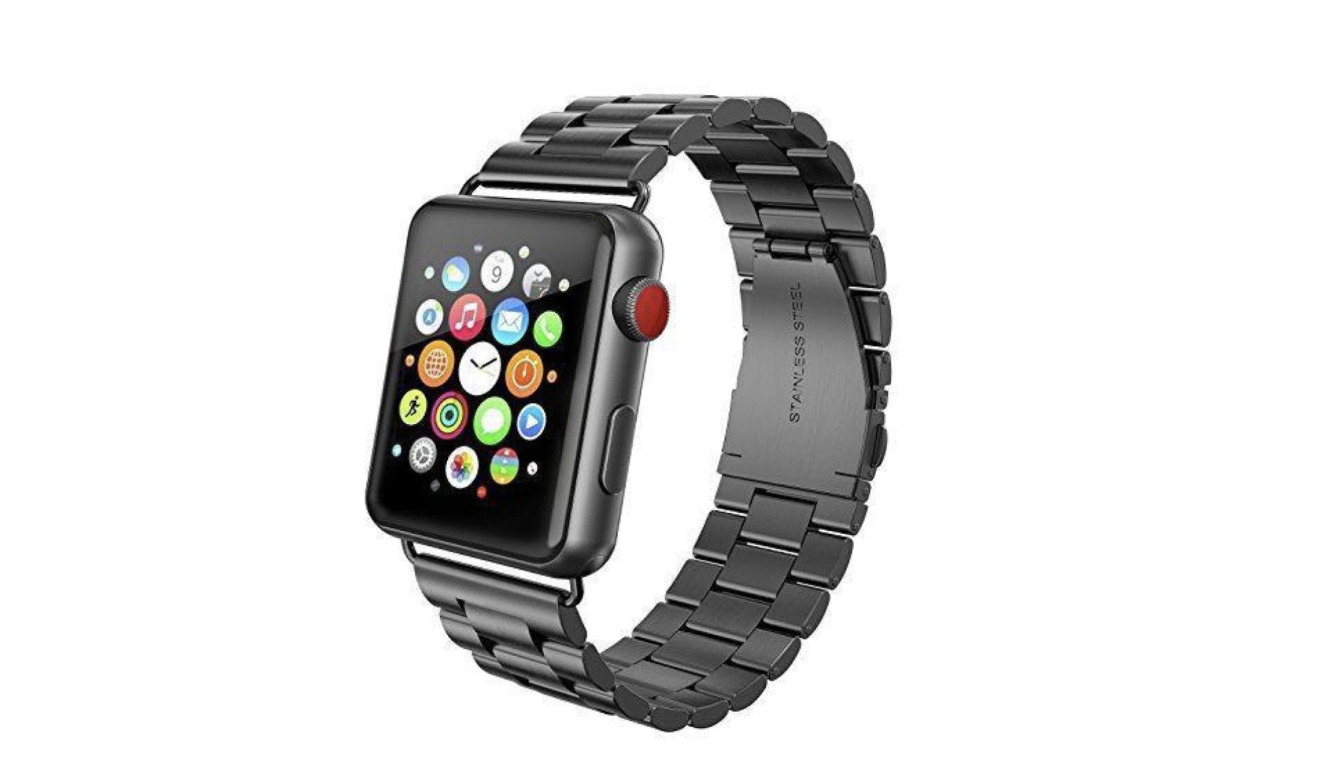 The band ships with a link removal tool that makes it easy to adjust, and it looks great on Apple Watch. It’s available in silver or black, and it’s surprisingly affordable.