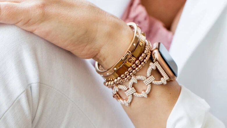 Goldenerre bracelets come in five sparkling styles. All of them are made from super-sturdy, high-end stainless steel or brass that will easily outlive the Apple Watch they’re combined with.