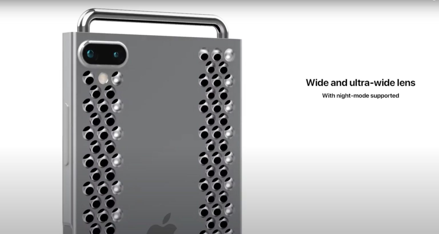 The video, posted this week to the Phone Industry YouTube channel, shows a shiny iPhone that will never, ever exist. It features a “recycled aluminium body” pocked with those instantly recognizable Mac Pro ventilation holes. (Try sliding one of those bad boys in your back pocket.)