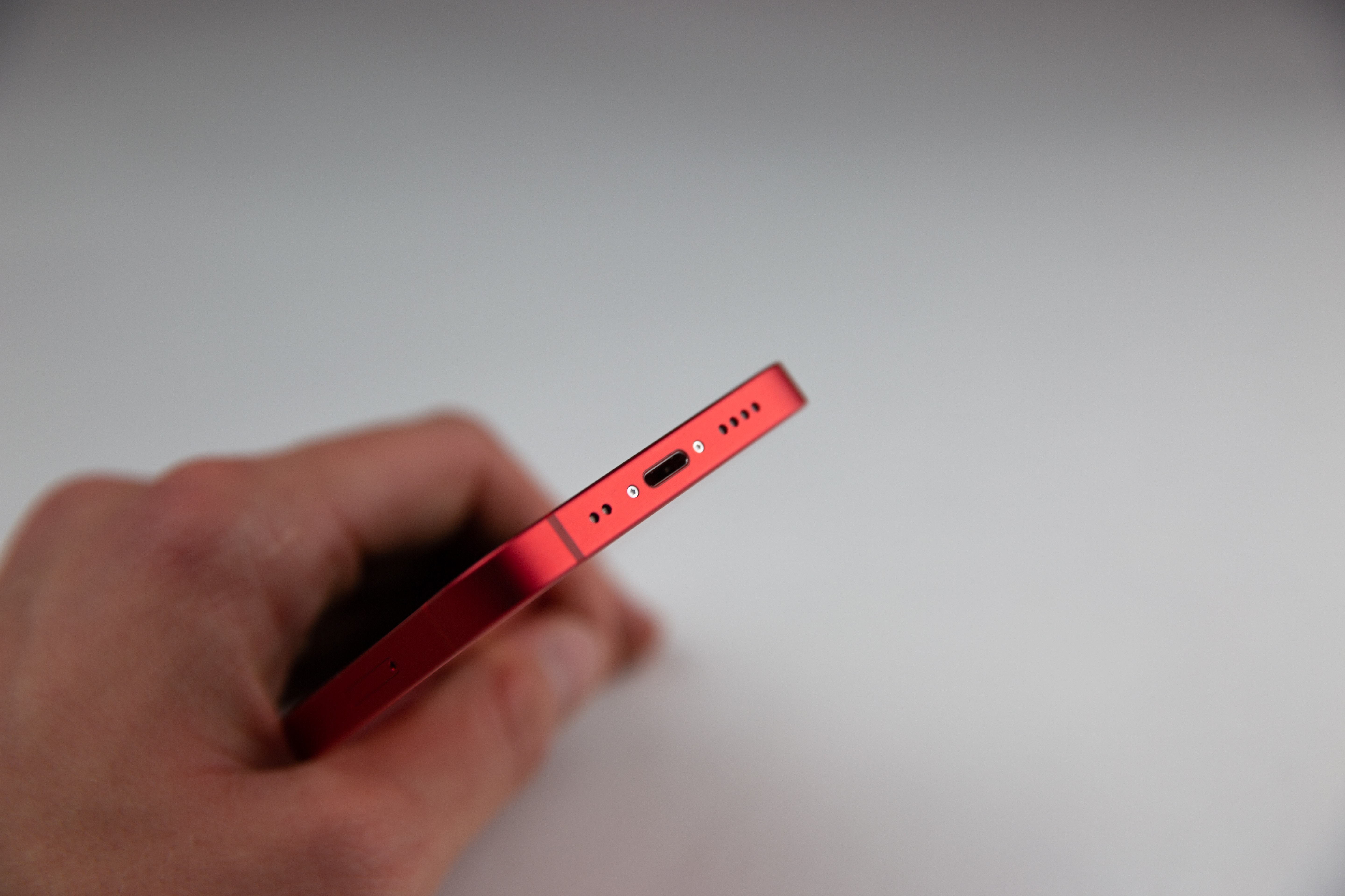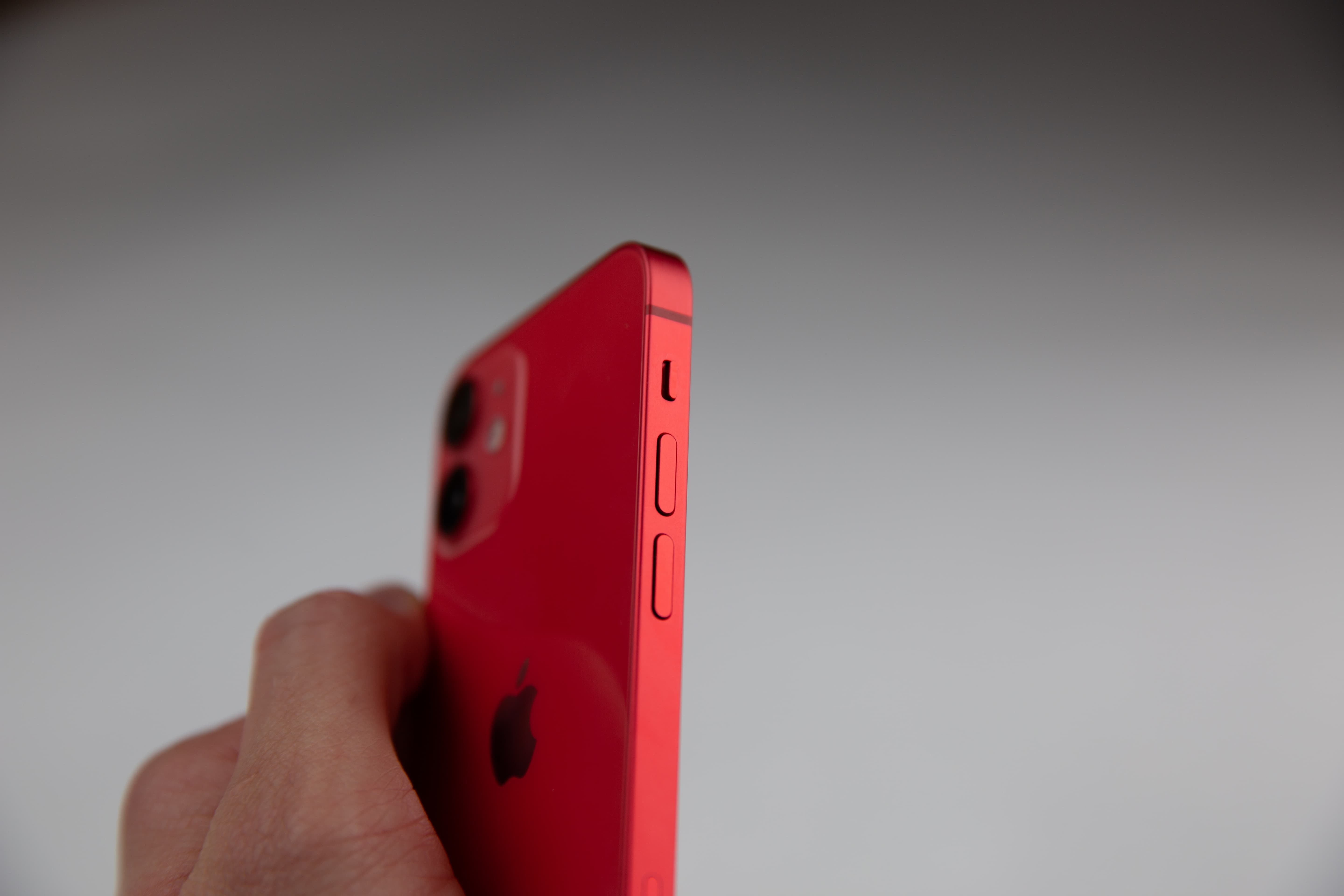 iPhone 12 mini looks exactly the same as its larger sibling, with shiny glass on both sides, sandwiching an aluminum frame. It’s available in the same five color options. I’ve been testing the Product(Red) version, which I think is very attractive! The red color pops but doesn’t look cheap and plasticky, as I feared it might. It’s a mature, grown-up red.
