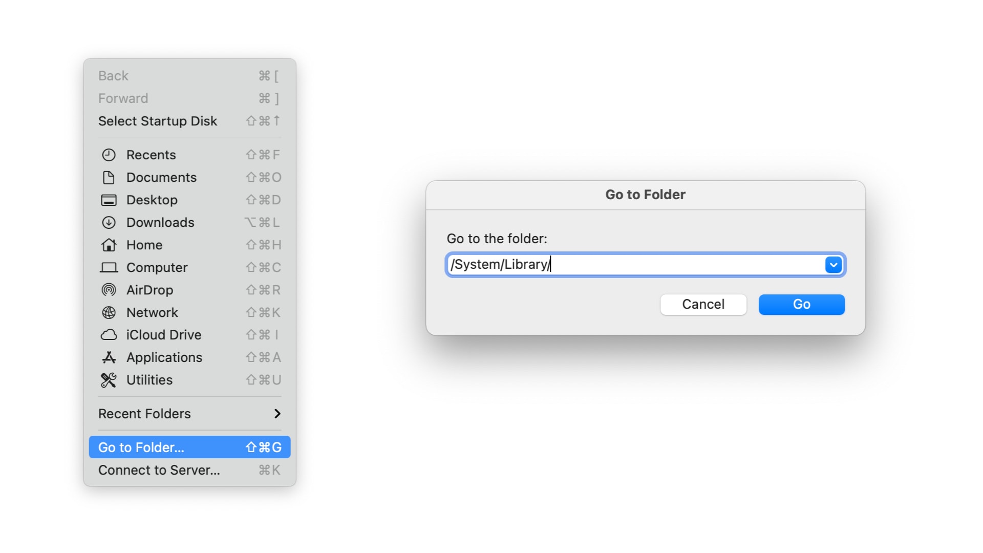 - Click Finder in your Dock, then click Go in your Mac’s menu bar.