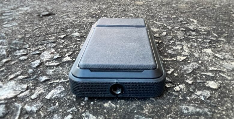 The black exterior is covered with a faux fabric. It looks professional, and the texture means you’re less likely to drop the device.