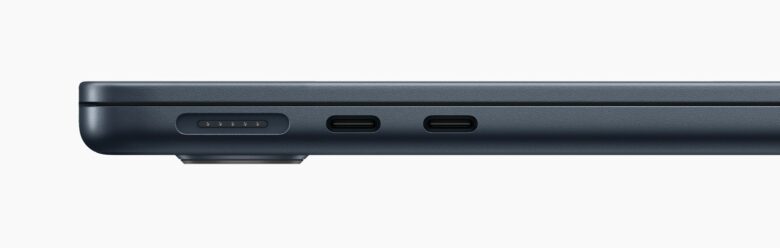 Both the M1 and M2 MacBook Airs sport two Thunderbolt/USB 4 ports. The M2 MacBook Air adds a MagSafe charging port, so you’ll retain access to both USB-C ports when juicing up the machine.