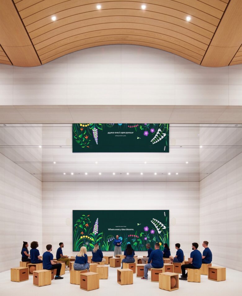 The store’s Forum — with its free, daily Today at Apple sessions — features a first for Apple in the U.K. It’s a mirrored ceiling that offers depth-enhancing reflections, Apple said.