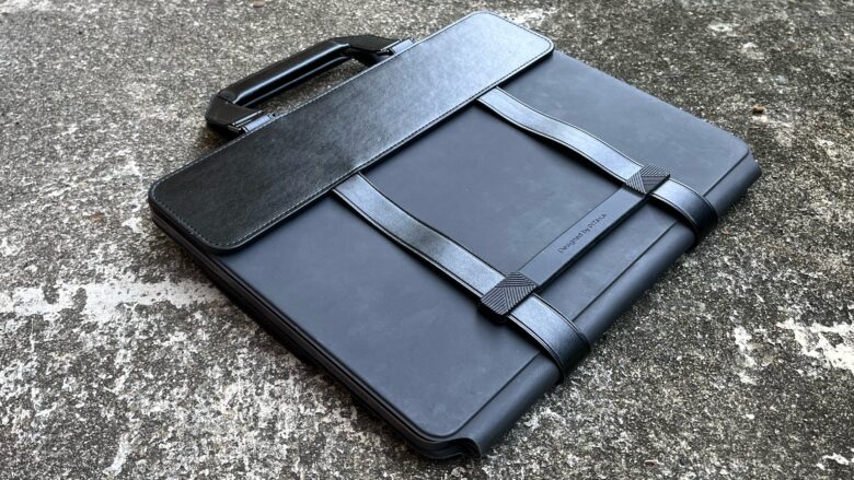 The Pitaka FlipBook Case wraps around the front and back of the Magic Keyboard. Two carrying handles come together when the keyboard is closed, converting the computer into a briefcase. It’s grab and go: flip the case closed and grab the handles and you’re on your way.