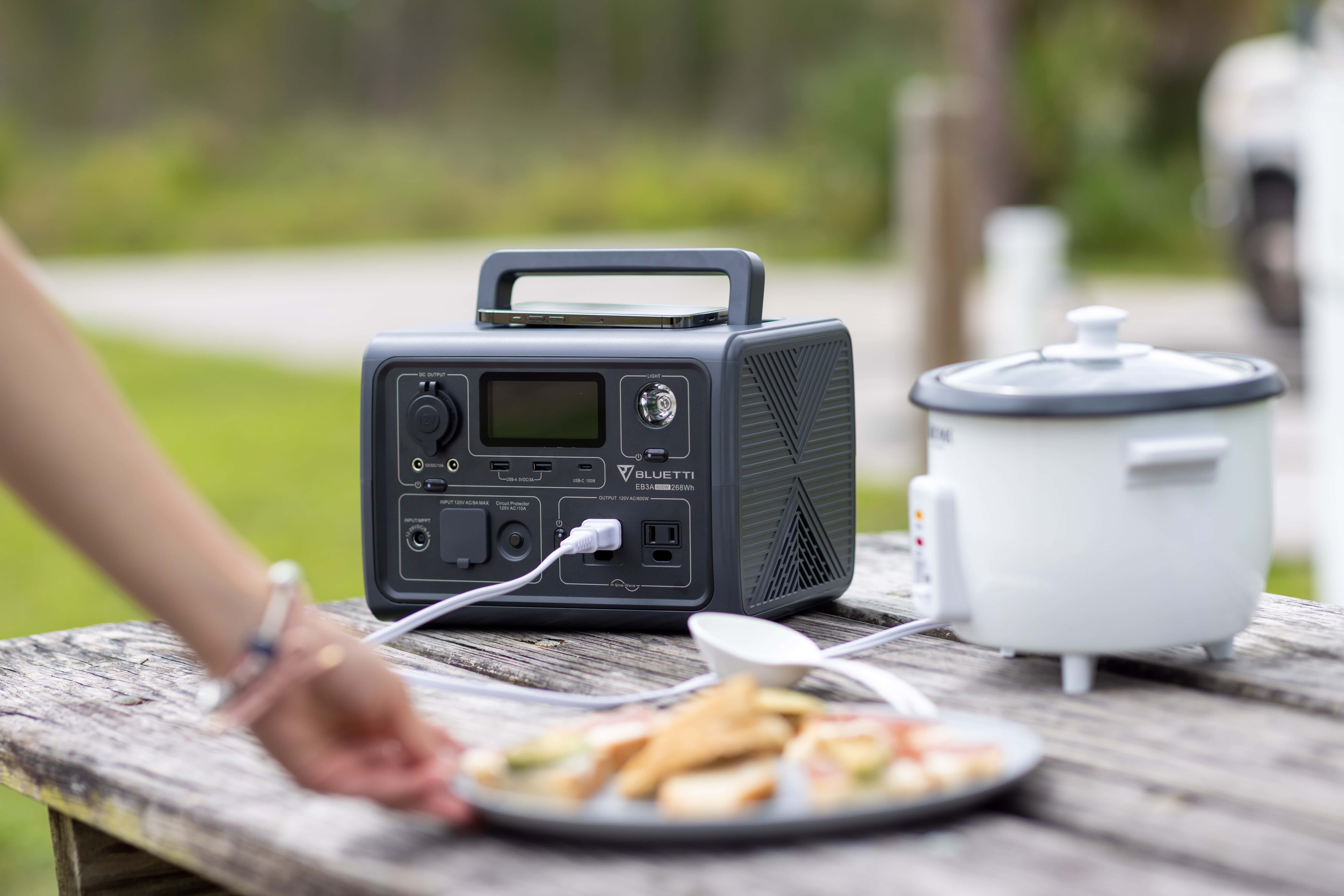 Bluetti’s newest portable power station is the EB3A. It’s easy to carry pretty much anywhere because it weighs just 10 pounds. It offers 600W power and can handle a surge up to 1,200W.