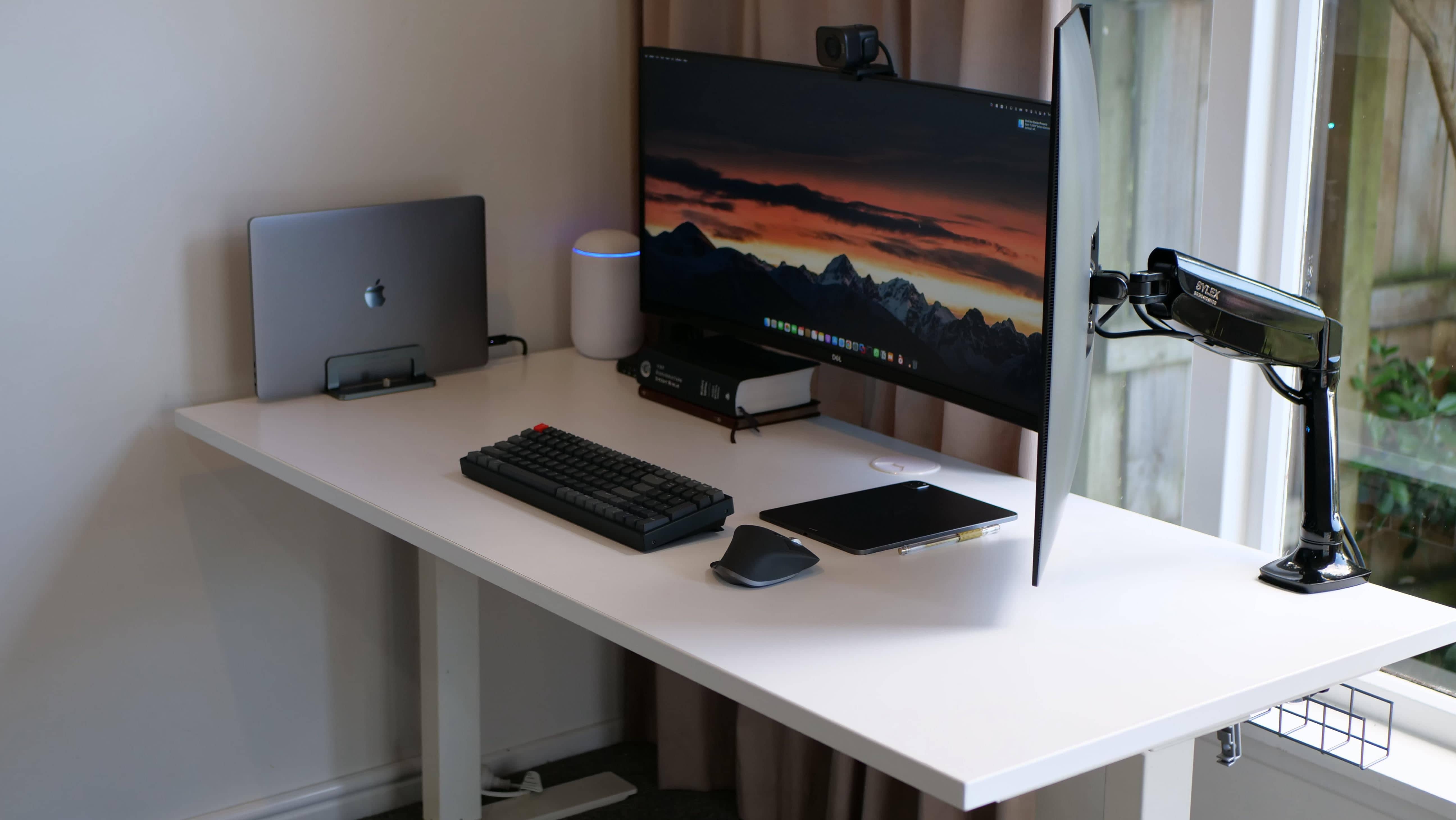 Powerful MacBook Pro — check. Extremely capable USB dock — check. Dazzling displays properly mounted in different orientations — check. Two of the best input devices you can buy — check.