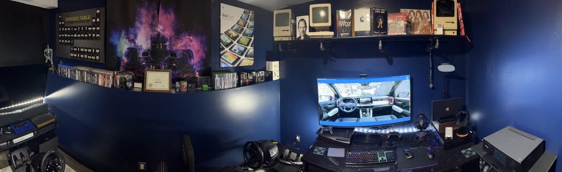In the panorama you will also see my one gaming center in the corner. Here is a 50-inch Sony with 120 refresh rate, PS3 slim, Xbox One S, Nintendo Classic, the original ATARI VCS and countless odds and ends.