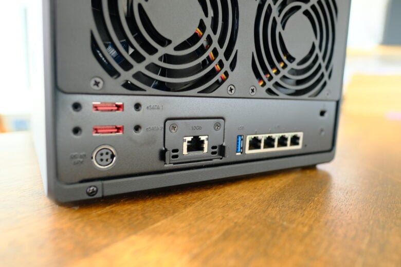 The NAS comes with plenty of IO options for file transfers, and now with optional 10G ethernet!