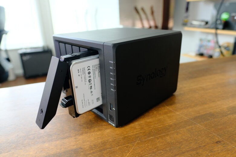What I love about this device is the company’s exclusive Synology Hybrid Raid feature, which allows you to mix and max any drives you want in the NAS without needing to match drives, like you do with other NAS brands. This is huge for me, because I always have spare drives lying around. With Synology’s tech, they can be given a second life as a NAS drive.
