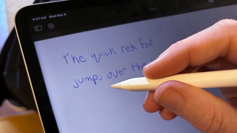 I wrote a significant chunk of this review using the Apple Pencil and Scribble. Naturally, this isn’t as fast as using an external, physical keyboard. But that’s often not an option when using an iPad.