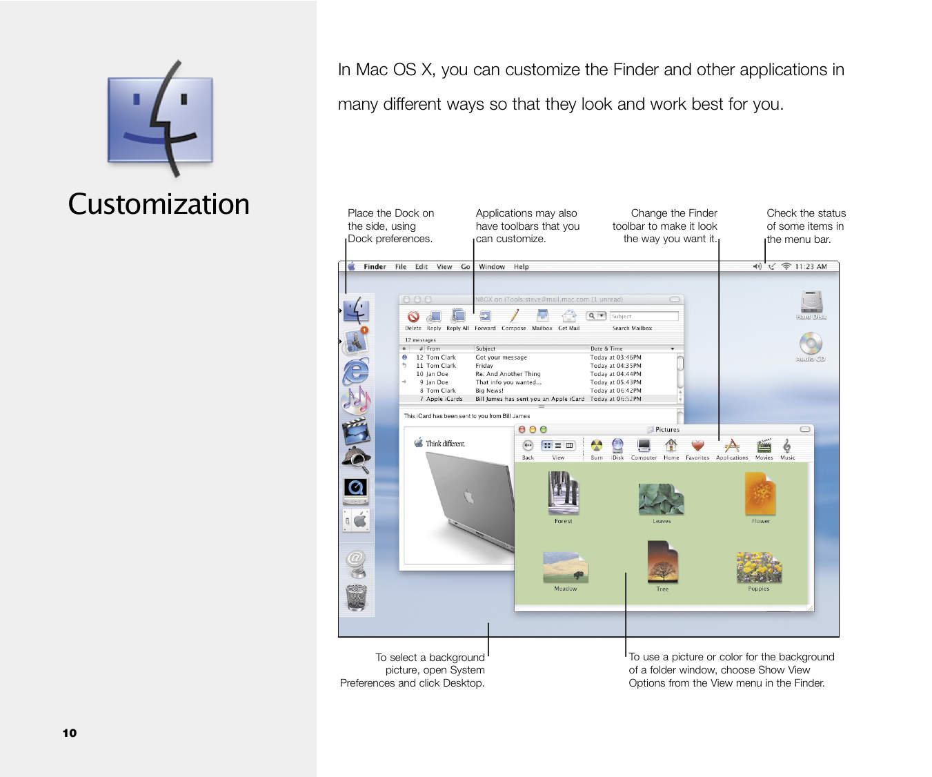 Change the Look and Feel of your Mac. Customize toolbars, Finder views, and Desktop pictures. The appearance of Mac windows and toolbars have undergone some of the biggest visual changes in a decade of OS X releases, from Aqua pinstripes to Brushed Metal to iOS grey.