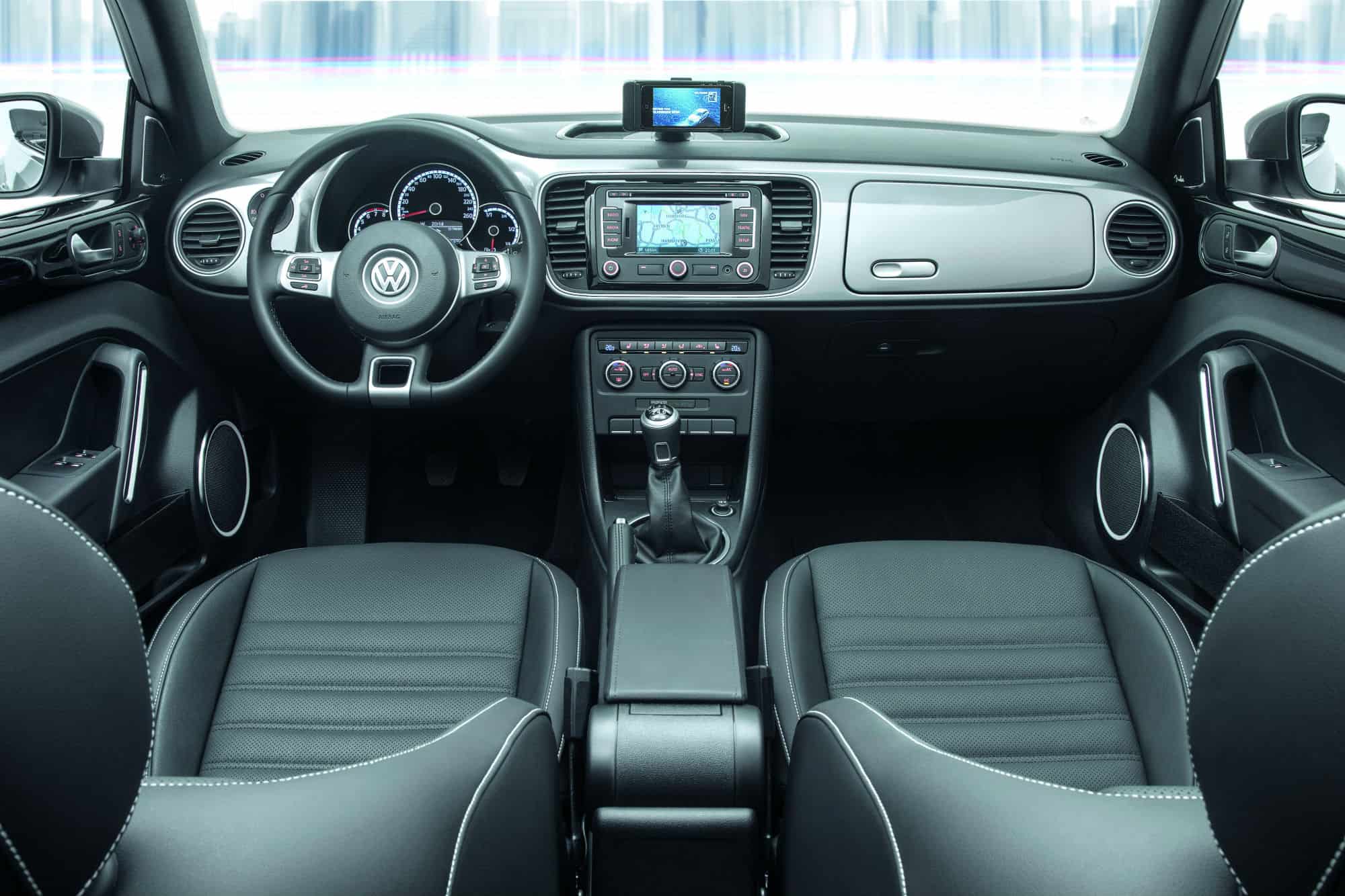 It also boasted a built-in iPhone dock and custom Beetle app. Features included the ability to stream songs from Spotify and iTunes, check lateral acceleration, monitor oil and coolant temperature gauges for the engine, and access a compass.