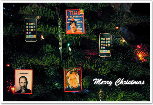The kind Apple fanatics at iPhone Savior have done the great public service of creating Apple and Steve Jobs-themed Christmas eCard templates and posted them over at Flickr for anyone who still has a few last minute greetings to get out.