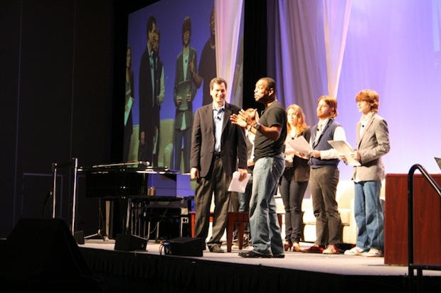 Pogue’s keynote was a variety show, with interviews, skits, singing and dancing — and a one-act play starring LeVar Burton as Steve Jobs.