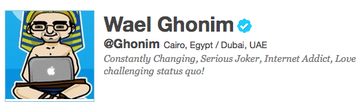 The profile image on Twitter for Egyptian activist Wael Ghonim shows him wearing a Pharoah’s crown, typing away on a Mac laptop. Ghonim, a Google marketing exec in Cairo, was released after 12 days in custody by authorities for a Facebook pageFacebook Page about the death of everyman activist Khalid Said that catalyzed protests.