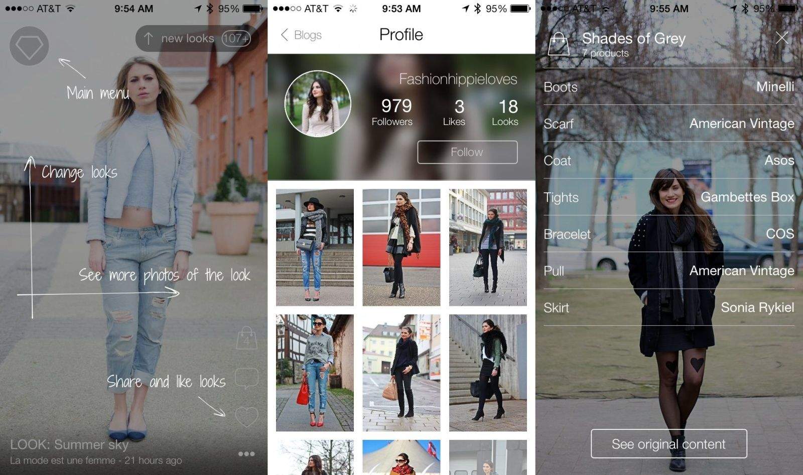 When you first launch the app, you’ll tap to follow as many of the included bloggers, and then tap your way through each of the photos included in each screen. You can tap through to see what clothes and accessories make up each look, or you can just swipe through and see various images of the different parts.